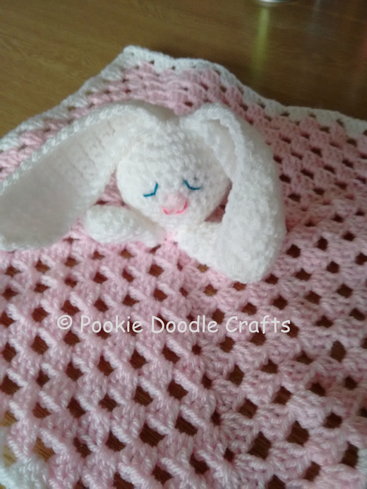 Pookie Doodle Crafts Crochet Baby Comforter Rabbit Toy And Hat